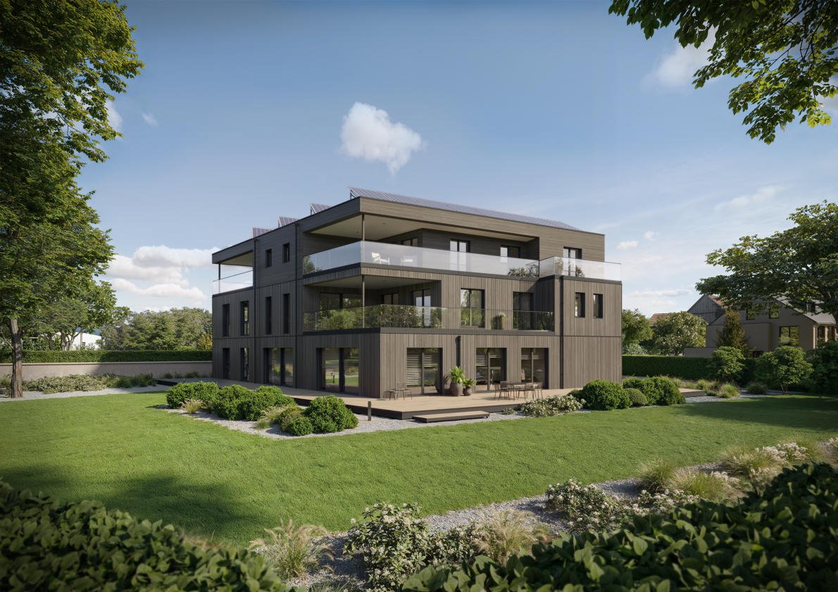 Nach einer intensiven Planungsphase in enger Zusammenarbeit mit den Bauherren wird das Wohn- und Geschäftshaus nun durch Fa. Baufritz in baubiologischer Holzfertigteilbauweise umgesetzt. Das Bürogebäude erstreckt sich über das Erdgeschoss und das 1. Obergeschoss und bietet Platz für ca. 25 Mitarbeiter. Im Dachgeschoss befinden sich zwei Wohneinheiten.